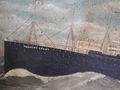 Eindrucksvolles Marinebild des Malers Carl Evers 1914, Bremen Dreimaster unter Besegelung begegnet backbord voraus einen im Hintergrund laufenden großen Dampfer der Hamburg Amerika Linie.