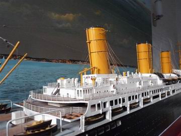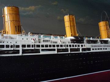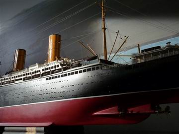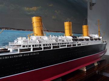 Modell des ehemaligen größten, deutschen Passagierdampfers der 1913 für die Hapag von Blohm & Voss gebaut wurde. Ein Eigenbau aus früheren Zeiten im Maßstab 1:150 Rumpf in Spanntenbauweise hergestellt und mit Sperrholz beplankt. Das Modell befindet sich in der letzten Phase der Überholung bzw. Restaurierung.